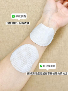 2. 湿敷法(适合已建立耐受或局部加强) 当肌肤适应后,可在痘痘、黑头等特定问题区域进行局部湿敷。将棉片光滑面贴合皮肤,敷1-3分钟即可。此法能集中护理,加速改善局部问题。可将棉片剪裁成适合鼻翼、嘴角等小区域的形状,让护理更精准,避免浪费。